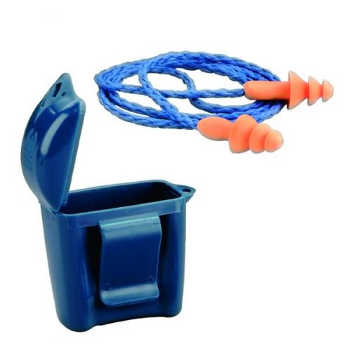 Kordonlu Kulak tıkaçları. Kullanışlı saklama kutusu ve kemer klipsi, tıkaçların kullanımlar arasında rahat, temiz ve güvenli tutulmasını sağlamaya yardımcı olur.